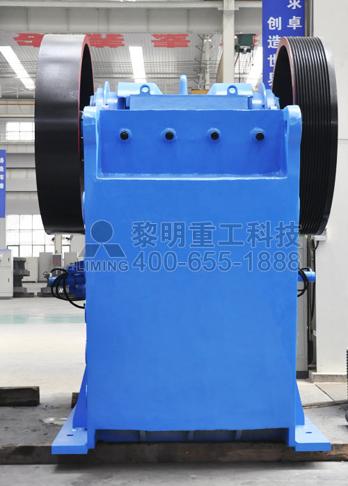 電動機(jī)驅(qū)動皮帶和皮帶輪,通過偏心軸使動鄂前后上下擺動。當(dāng)動鄂推動動鄂板向定鄂板運(yùn)動時,物料被壓碎或劈碎。當(dāng)動鄂和動鄂板在偏心軸、彈簧的作用下后退時,先前已被壓碎或劈碎的物料從鄂板的下部排料口排出。