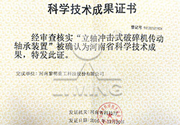 河南省科學(xué)技術(shù)成果獎(jiǎng)(立軸沖擊式破碎機(jī)傳動(dòng)軸承裝置)