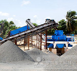 湖南大型破碎機(jī)生產(chǎn)線工作時(shí),大塊石料經(jīng)料倉由振動(dòng)給料機(jī)均勻地送進(jìn)顎式破碎機(jī)粗碎,粗碎后的石料由皮帶輸送機(jī)送到反擊式破碎機(jī)細(xì)碎,細(xì)碎后的石料再由皮帶輸送機(jī)送進(jìn)振動(dòng)篩篩分,篩分出幾種不同規(guī)格的石子,滿足粒度要求的石子由成品皮帶輸送機(jī)送往成品料堆;不滿足粒度要求的石子由皮帶輸送機(jī)返料送到反擊式破碎機(jī)再次破碎,形成閉路多次循環(huán)。